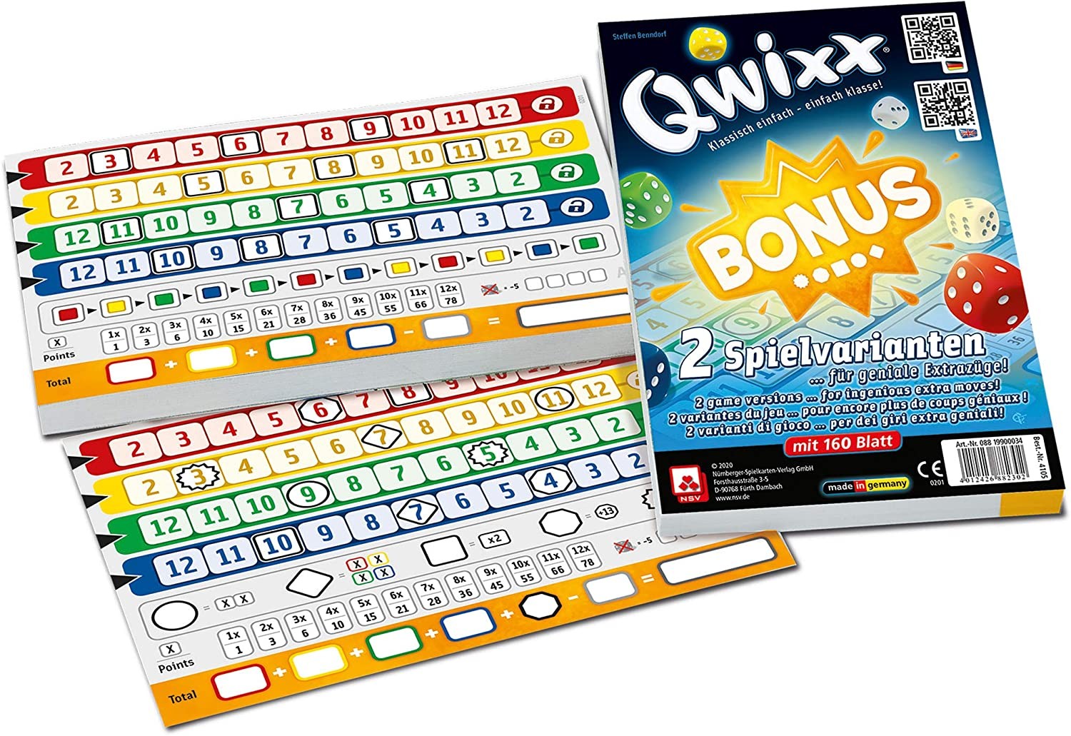 Mehr Möglichkeiten, noch mehr Spaß, jede Menge geniale Extrazüge - genau das ist QWIXX - BONUS! Die Spielregeln des Originals bleiben komplett erhalten, neu sind jedoch die Bonusfelder, die lukrative Sonderaktionen auslösen. Kreuzt man die entsprechenden Felde...