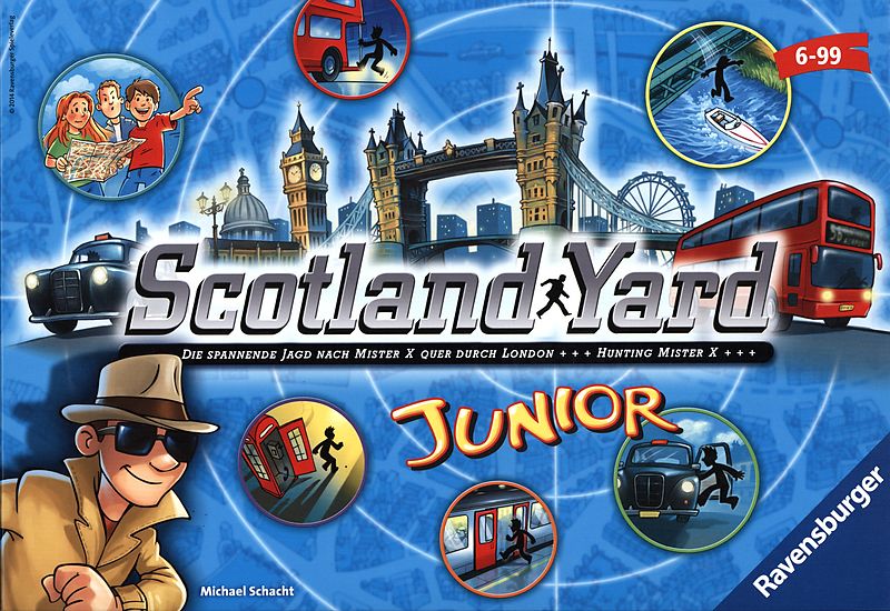 Spannendes Detektivspiel für Anfänger: Gemeinsam jagen die cleveren Jung-Detektive den geheimnisvollen Mister X kreuz und quer durch London. Bei Scotland Yard Junior sind ihm die Spieler dicht auf den Fersen: Mister X flüchtet für alle sichtbar mit Taxi, Bus o...