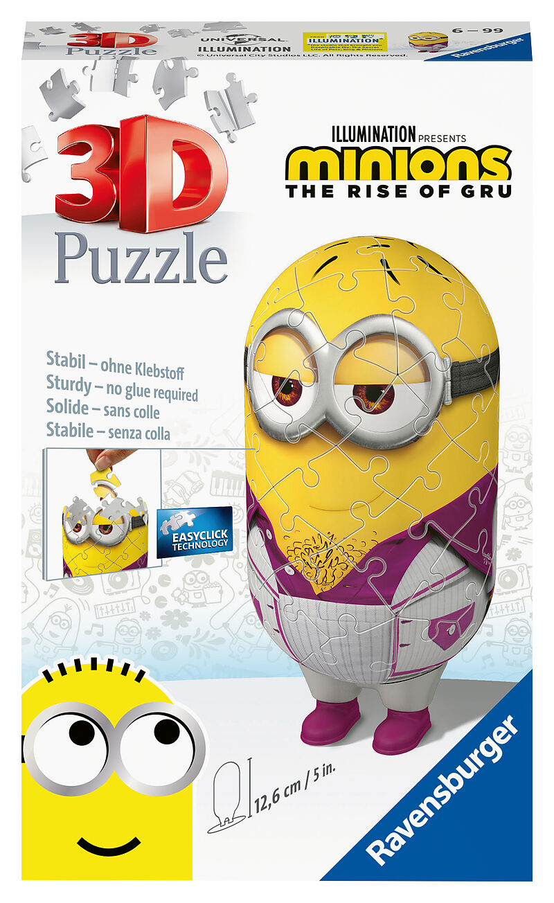 Die beliebten Minions gibt es jetzt auch als witziges 3D Puzzle! Dank Easyclick Technology passen die Kunststoff-Puzzleteile perfekt zusammen und formen eine stabile Figur. Die Nummerierung ermöglicht einfaches Puzzeln nach Zahlen.