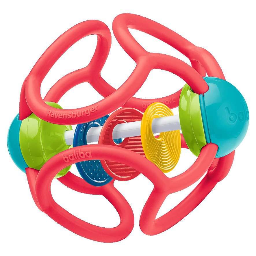 Das bunte Babyspielzeug mit seiner offenen Struktur können schon die Allerkleinsten greifen und zum Mund führen. Drei bunte, bewegliche Klapperscheiben animieren immer wieder zum Spielen, Schütteln und Werfen. So bleibt der Greifall lange interessant und förde...