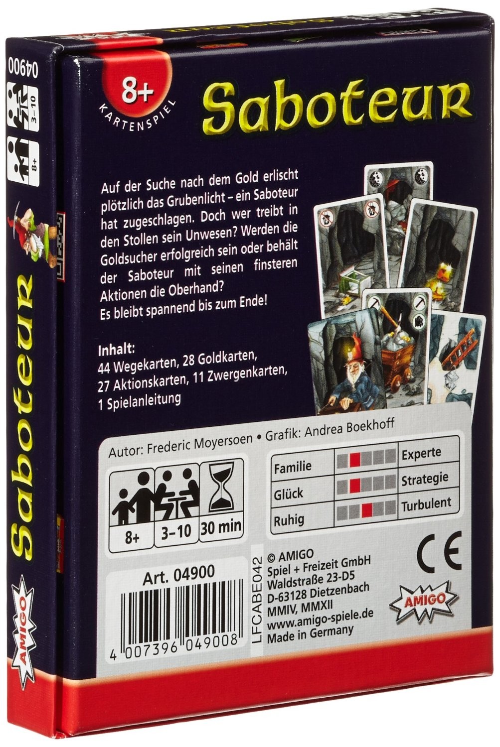 Saboteur Die Spieler schlüpfen in die Rolle eines Zwerges. Als Goldsucher sind Sie im Bergwerk auf der Suche nach Gold. Plötzlich zerbricht e ine Spitzhacke und es erlischt das Grubenlicht. Der Saboteur hat zugeschlagen. Doch wer von den Spielern ist der Sabot...