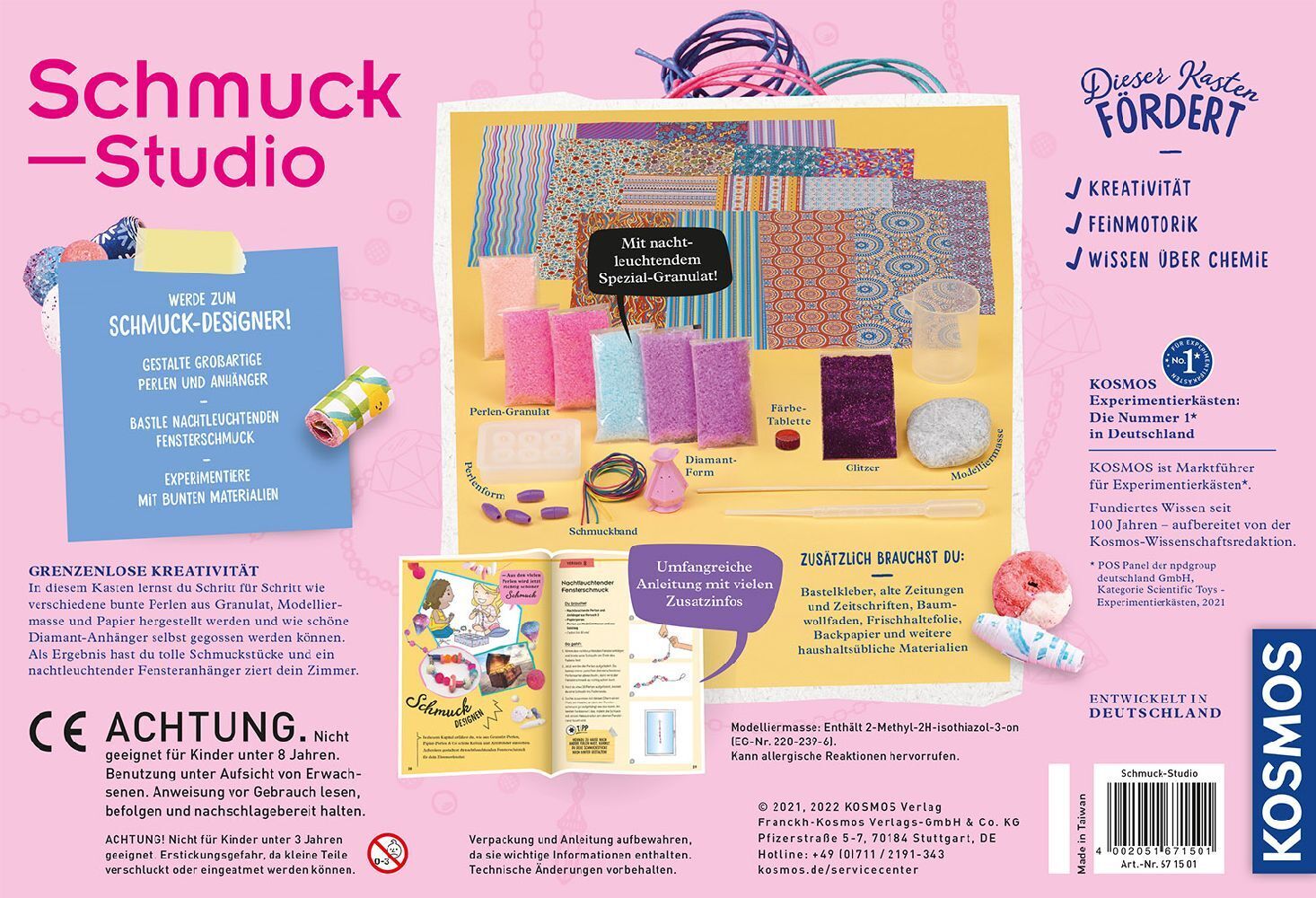 Schmuck-Studio Funkelnde Diamantanhänger, zarte Ketten aus Papierperlen, ein nachtleuchtender Fensterschmuck mit diesem umfangreichen DIY-Set von KOSMOS werden Kinder von 8 bis 12 Jahren zu kreativen Schmuckdesignerinnen. Die ausführliche Anleitung erklärt, wi...