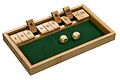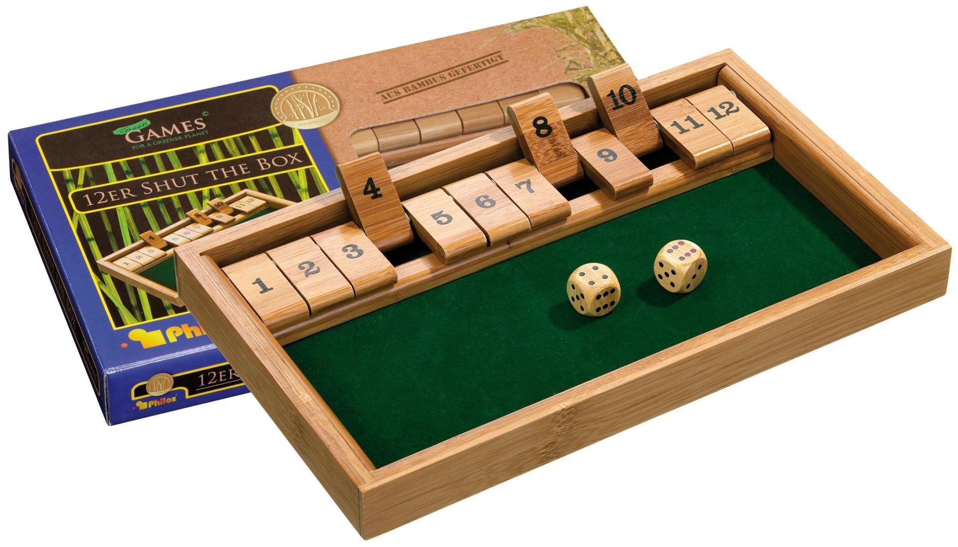 Spielbrett: Bambus, Filzinlett, Maße 325 x 195 x 30 mm. Würfel: Bambus, 2 Stück, 16 mm.
