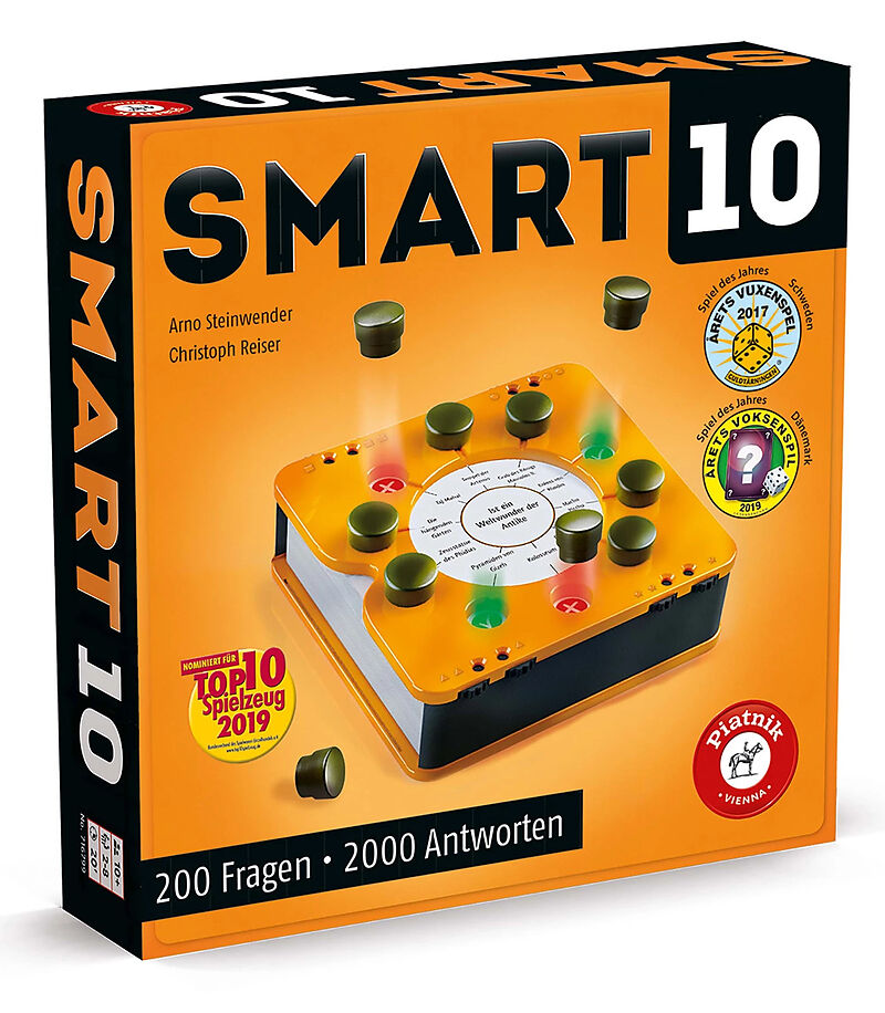 Piatnik 7167 Smart 10 - das revolutionäre Quizspiel Smart 10 Das revolutionäre Quizspiel! Eine Frage - 10 mögliche Antworten. Doch welche Antwort ist tatsächlich richtig? Die praktische Aufbewahrungsbox beinhaltet 100 Quizkarten mit 200 Fragen| mit Punktezähle...