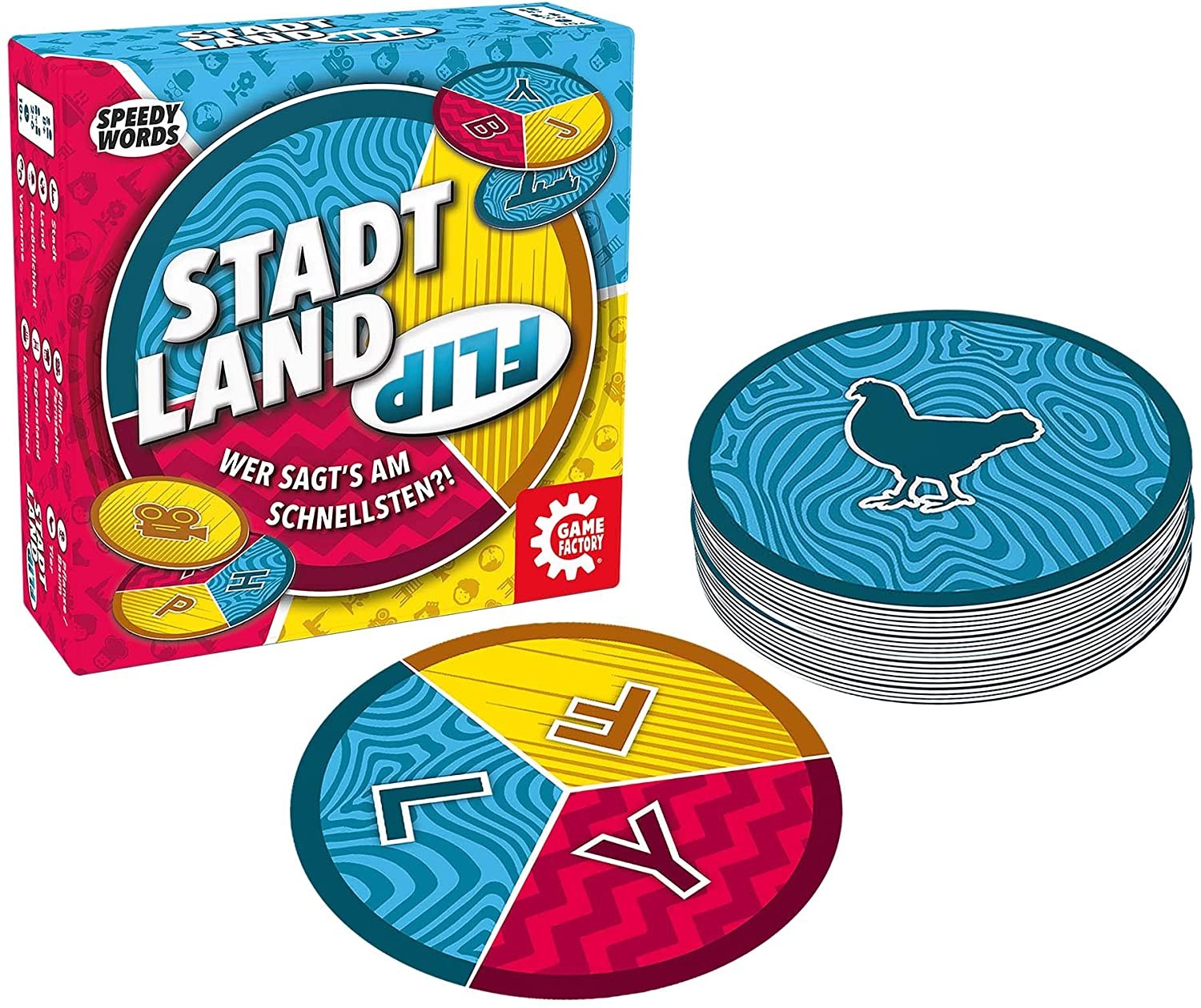 STADT LAND FLIP ist der bekannte Klassiker ohne Block und Stift - anstatt Antworten aufzuschreiben, ruft man hier Wort für Wort zu sich ständig ändernden Kategorien und Buchstaben in die Runde. Stadt mit L, Film mit P, Tier mit S der passende Begriff liegt auf...