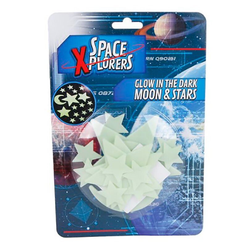 Der Mond und die Sterne laden sich im Tageslicht auf und leuchten in der Nacht.
