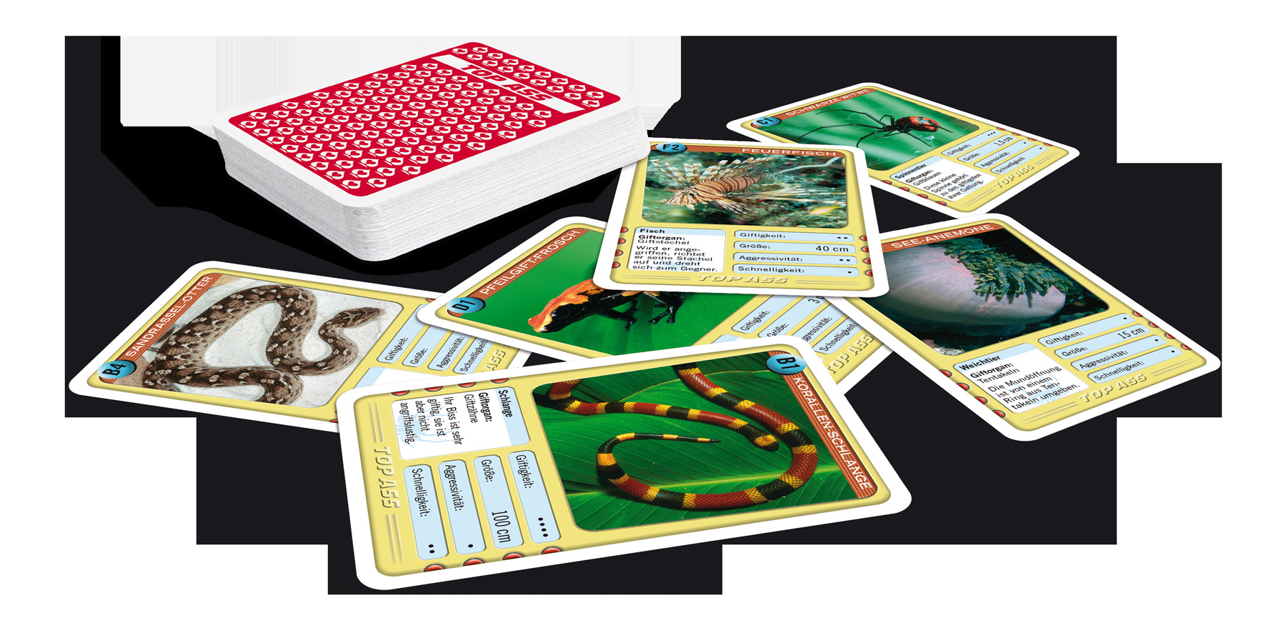 Ob giftige Spinnen, wie die Vogelspinne oder giftige Schlangen, bietet das TOP ASS Giftige Tiere- Quartett. Giftige Tiere aus allen Kontinenten, mit schönen Bildern und gut erklärten texten. Lassen sie sich faszinieren von der Welt der giftigen Tiere.