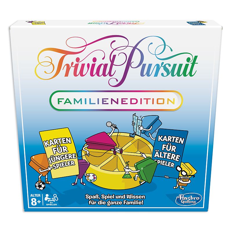 Trivial Pursuit Familien Edition Das bekannte Quizspiel mit Fragen für Klein und Groß. Trivial Pursuit präsentiert sich hier in der Familien-Edition und eignet sich für Spieler ab 8 Jahren. Es enthält 400 Karten mit 2.400 Fragen in 2 verschiedenen Kartensätzen...