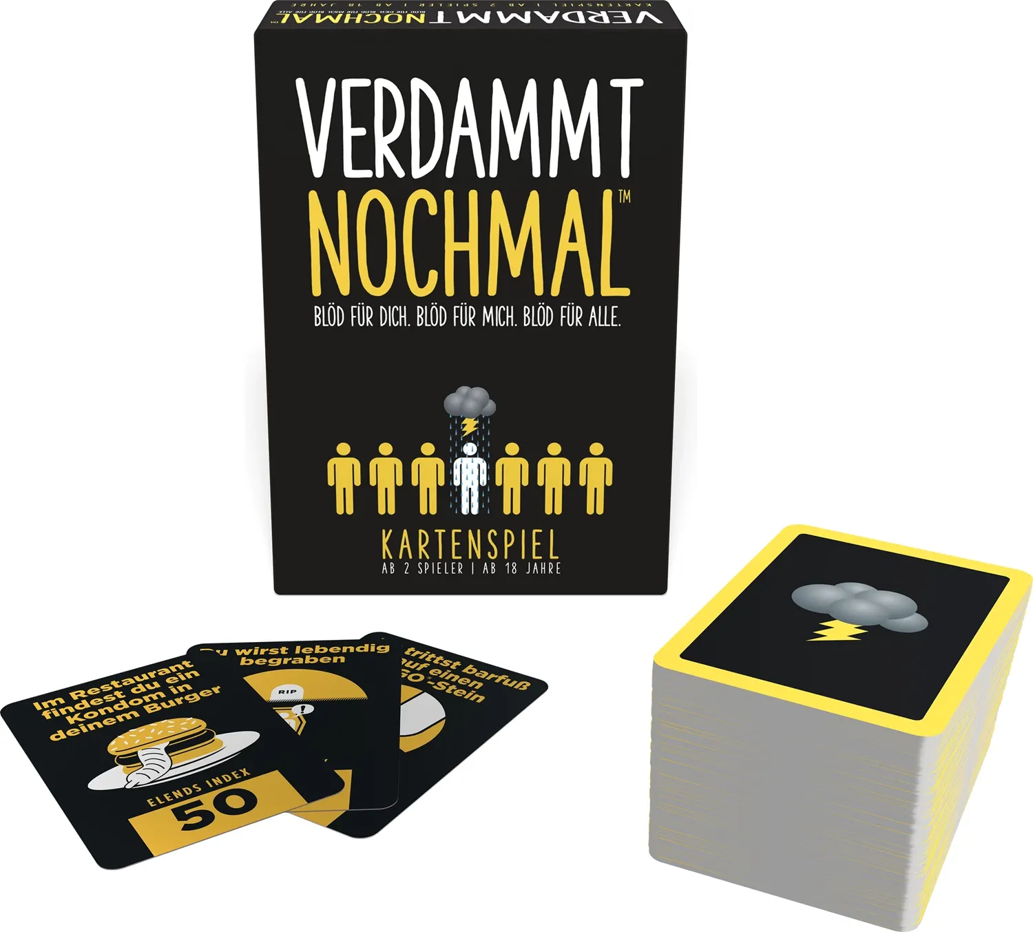 Goliath 76531 Verdammt Nochmal Bei Verdammt Nochmal entscheidest du, welche Situation schlimmer ist! Auf den Karten sind verschiedene, zum Teil kuriose, Situationen beschrieben. Du entscheidst welche der Situationen schlimmer ist Du wirst von einem Blitz getro...