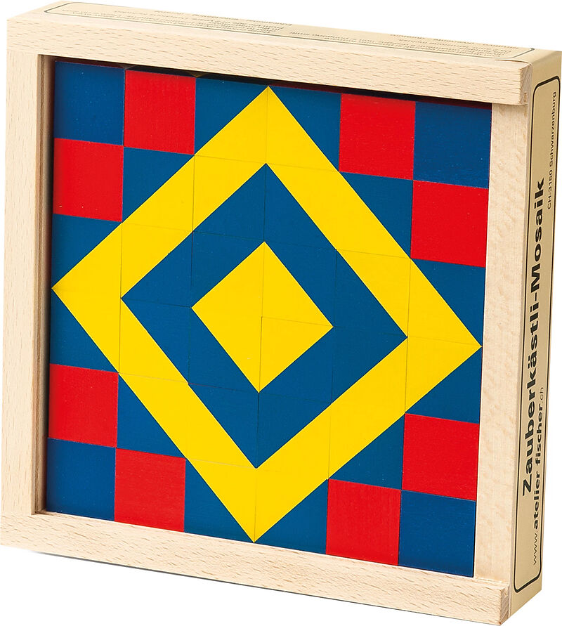 Wenn das gelegte Muster in der Holzschachtel auf den Tisch gestürzt wird, erscheint das gleiche Muster in anderer Farbe, wie durch Zauberei. Das schöne Design und die hochwertige Verarbeitung machen dieses beliebte Spiel zu etwas Besonderem.